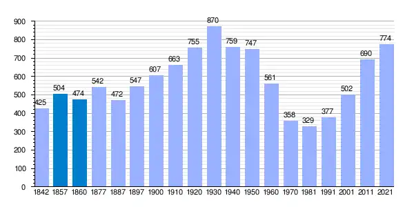 Hacia mediados del siglo XIX la villa tenía contabilizada una población de 425 habitantes.[2] Aparece descrita en el noveno volumen del Diccionario geográfico-estadístico-histórico de España y sus posesiones de Ultramar de Pascual Madoz de la siguiente manera: