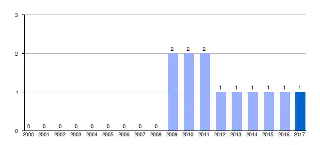 Gráfica de evolución demográfica de Huelmos (Cipérez)[4]​ entre 2000 y 2017