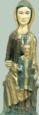 Esta imagen mariana sigue el modelo de la kiriotissa, es decir, entronizada, rígida, coronada y con el Niño sentado sobre las rodillas totalmente de espaldas a ella, pero la talla bien puede estar datada a finales del siglo XII y principios del XIII, pues el niño está apoyado sobre la rodilla izquierda, detalle del románico tardío (anteriormente el Niño se sentaba en el medio). A su vez, la cara de la virgen está dotada de una leve expresividad, propia de esta época. El niño, en su mano derecha, sostiene la bola del mundo, por ser su redentor, y en la mano izquierda, un libro, símbolo de sabiduría. La virgen, a su vez, en su origen debiera de portar algún objeto tal como una manzana, árbol o cualquier elemento de la naturaleza, también símbolo de sabiduría.