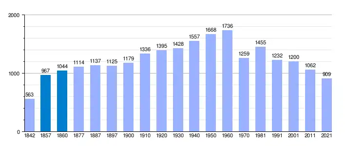 | Gráfica de evolución demográfica de Huerta del Rey[6] entre 1842 y 2021 |