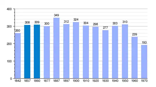 | Gráfica de evolución demográfica de Huerta de Vero[4] entre 1842 y 1970 |