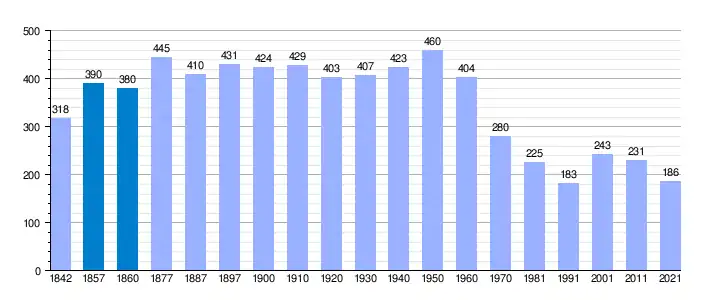 | Gráfica de evolución demográfica de Huerta del Marquesado[2] entre 1842 y 2021 |