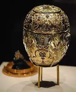 Realizado en estilo rococó, celebraba el bicentenario de la fundación de San Petersburgo en 1703. Está hecho de oro rojo, verde y amarillo, platino, diamantes talla rosa, rubíes, esmalte, cristal de roca y retratos en acuarela en miniatura sobre marfil. El huevo mide 111 milímetros por 96,5 milímetros.[2]
