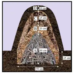 En sus formas básicas, los montículos son construidos apilando troncos, ramas, restos vegetales, compost y tierra adicional directamente en el suelo o en una zanja poco profunda.[6][7]​ Los montículos también pueden hacerse alternando capas de madera, césped, abono, paja y tierra. Aunque su construcción es sencilla, la planificación es necesaria para evitar las pendientes empinadas que darían lugar a la erosión. Algunos diseños recomiendan que los montículos tengan una pendiente de entre 65 y 80 grados.[8]