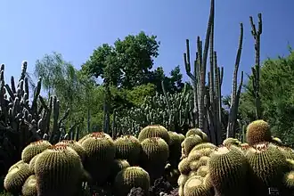 La exhibición de cactus más espectacular de las que se muestran son los 500 cactus "asiento de la suegra" (Kroenleinia grusonii), con su aspecto de barril con sus gruesas púas amarillo dorado, el más viejo con más de 85 años. Florecen en la primavera, y son nativos de la región central de México. Esta es probablemente la mejor exhibición de "barriles de oro" en el mundo.[5]