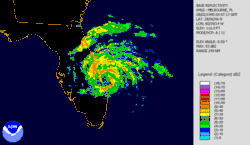 ![]() El huracán Erin en su máxima intensidad poco antes de tocar tierra en Pensacola el 3 de agosto de 1995 | ||