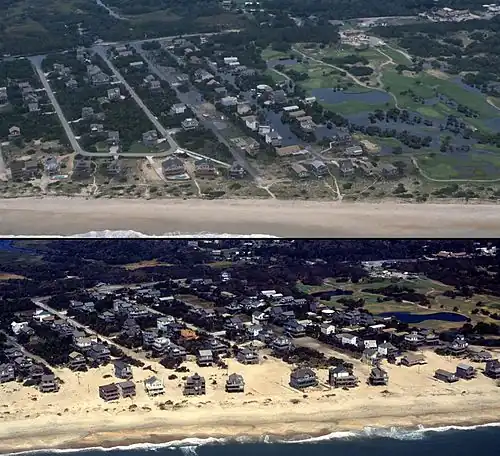 - ↑ a b John Roach (2003). «Shoring Up N. Carolina Islands: A Losing Battle?». National Geographic News. Consultado el 25 de agosto de 2018.