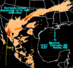 - ↑ David Roth (2005). «Rainfall Summary for Hurricane Ismael». Hydrometerological Prediction Center. Archivado desde el original el 8 de octubre de 2006. Consultado el 5 de noviembre de 2006.
