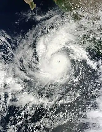 ![]() El huracán Jova cerca de la intensidad máxima el 10 de octubre de 2011 | ||