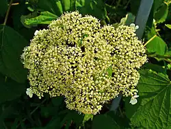 Hydrangea arborescens L., con el nombre común en inglés de smooth hydrangea, wild hydrangea, o sevenbark, es una especie de arbusto perteneciente a la familia Hydrangeaceae. Son de pequeño a medio tamaño, caducifolios que alcanzan los 3 m de altura y son nativos del este de los Estados Unidos.[2]