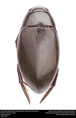 - ↑ Hydrophilus triangularis BugGuide. Consultado el 24 de junio de 2022.