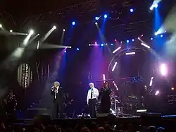 ![]() Iñaki Uranga (en el centro) durante un concierto con El Consorcio en 2009. | ||