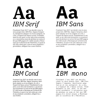 - IBM Plex Sans Condensed: una variante condensada de IBM Plex Sans.