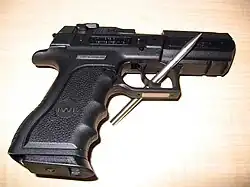 Extraíble, con capacidad para 16 balas 9 x 19 Parabellum en doble hilera. 12 en doble hilera en las versiones .40 S&W y .41 Action Express | |