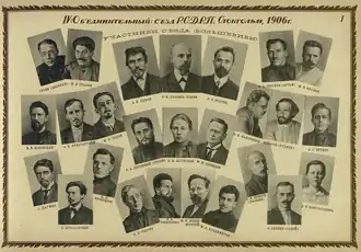 - Esta obra contiene una traducción derivada de «IV съезд РСДРП» de Wikipedia en ruso, publicada por sus editores bajo la Licencia de documentación libre de GNU y la Licencia Creative Commons Atribución-CompartirIgual 4.0 Internacional.