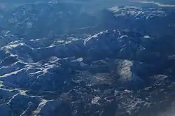 ![]() Vista aérea del paisaje montañoso de Iballë en invierno.