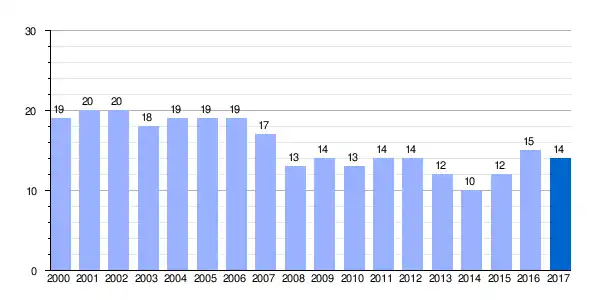 | Gráfica de evolución demográfica de Ibarguren[7] entre 2000 y 2017 |