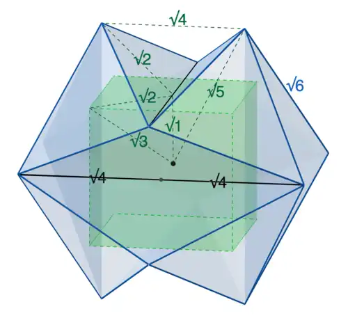 - ↑ Coxeter, H.S.M. (1973). «Section 3.7: Coordinates for the vertices of the regular and quasi-regular solids». Regular Polytopes (3rd edición). New York: Dover.; 1st ed., Methuen, 1947