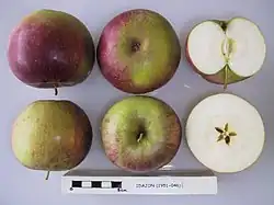 - ↑ Hampson, Cheryl R.; Kemp, Henk (2003). Apples. Botany, Production and Uses, ed. Characteristics of Important Commercial Apple Cultivars. CABI Publishing. pp. 62. ISBN 0-85199-592-6.