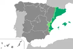 El catalán (autoglotónimo: català) es una lengua romance pluricéntrica[n. 1] hablada por unos diez millones de personas, incluyendo hablantes no nativos, en Cataluña, las Islas Baleares, Andorra, la Franja de Aragón, el Rosellón y la ciudad sarda de Alguer, así como en la Comunidad Valenciana y la comarca murciana de El Carche,[8] donde recibe el nombre de valenciano (autoglotónimo: valencià).[n. 2] También es hablado por algunas pequeñas comunidades en otras partes del mundo.