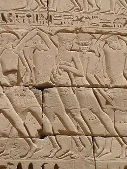 - ↑ Bork, Ferdinand (1939–1941). AfO 13: 227., citado en: Wainwright (Some Early Philistine History, p. 79, nota 3) atribuye la conexión a Georg Hüsing.