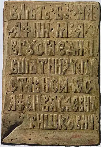 - Lituano (ruso: литовский язык) — posiblemente de uso exclusivo en Moscovia. Utilizado por Lavrenti Zizany (finales del siglo XVI y por Pamva Byerynda (1653).