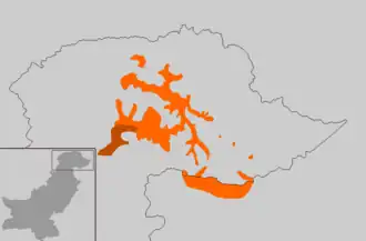 El Shina se habla en valles a gran altura en las estribaciones de Hindukush (Astore, Chilas, Dareil, Tangeer, Gilgit, Ghizer, y algunas partes de Baltistan y Kohistan). También se habla en varios valles situados en Jammu y Cachemira de India (Gurez, Drass, Kargil, Karkit Badgam y Ladakh).