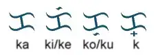 Latino (Variante Filipina) caracteres antiguos en Baybayin | |