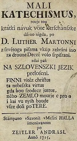 En 1715, el sacerdote evangélico Francisco Temlin publicó en Sajonia el primer libro prekmuro, titulado Mali katechismus ('Pequeño catequismo'). István Küzmics (1723-1779) tradujo los cuatro evangelios luteranos, que serían la base principal del lenguaje literario. El obispo católico de Szombathely, János Szily (1735-1799) quería fomentar las escuelas de Vendvidék, por eso apoyaba a Miklós Küzmics (1737-1804) para que él también publicase libros. Con el nombre de Küzmics Szvéti evangyeliomi tradujo los cuatro evangelios, además de redactar un libro de oraciones y uno de abecedario, elaborando así el prekmuro estándar. Después de Küzmics continuaba la formación de la lengua literaria. A pesar de que los políticos húngaros no querían que el prekmuro fuese considerado sólo un dialecto del esloveno, las clases altas de Vendvidék opinaban que la gente de esa región era verdaderamente eslovena, pero de un lenguaje diferente. El prekmuro ha sido un enlace importante en la vida de la nación eslovena, por eso las clases cultas de Prekmurje siguieron elaborando y cuidando la lengua estándar hasta pasado el año 1919, que ya no se usaba en las escuelas, pero sí en los templos, en la prensa y en la comunicación familiar. Después de 1945, en la Yugoslavia comunista, el prekmuro se usaba sólo como lengua familiar.