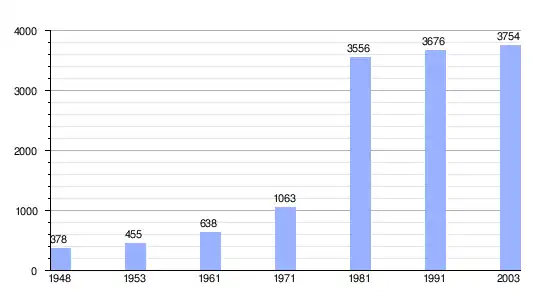 | Gráfica de evolución demográfica de Igalo entre 1948 y 2003 |