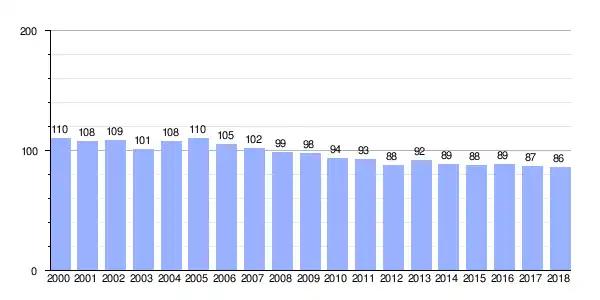 | Gráfica de evolución demográfica de Igrexario entre 2000 y 2018 |