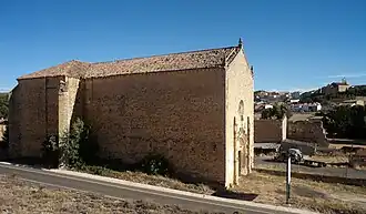 Es el único edificio que queda del conjunto original. La iglesia está construida en un estilo gótico isabelino, con una notable portada. El interior conservaba a finales del siglo XX la bóveda de crucería primitiva con sus nervaduras sin retoques ni alteraciones. El resto de la nave fue reformada en el siglo XVIII por Martín de Aldehuela, recubriéndose las paredes, artesonados y pilastras con yesos, según su estilo y época, resultando un estucado de notable belleza. También se conserva la tumba de sus fundadores, los marqueses de Moya –Andrés de Cabrera y Beatriz de Bobadilla— personajes destacados durante el reinado de los Reyes Católicos.[1]