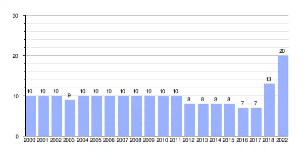 | Gráfica de evolución demográfica de Iglesia entre 2000 y 2022 |
