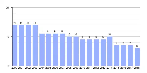 | Gráfica de evolución demográfica de Iglesia entre 2000 y 2018 |