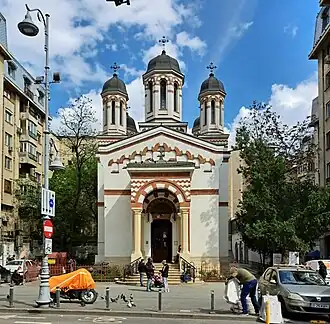 La iglesia que hoy existe fue levantada a mediados del siglo XIX, tras varios seísmos que tuvieron lugar en la primera mitad de aquel siglo. Hay referencias de iglesias anteriores bajo el mecenazgo de la familia Cantacuzino, de 1705 y 1635 (de madera), en este lugar. Está trazada en un estilo, mezcla afortunada de elementos bizantinos y del estilo brâncovenesc. La iglesia tenía estatuto de monasterio y poseía tierras, tiendas y otros bienes inmuebles, siendo una de las más ricas de Valaquia. Está ornamentada en su interior con iconos de George Tattarascu (1853-1856), y conserva reliquias muy estimadas por los fieles como la mano derecha de San Cipriano, alojada frente al altar mayor.[1]