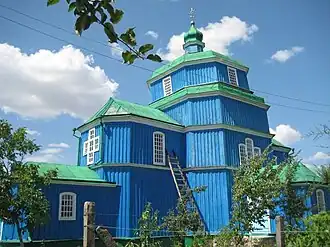 La iglesia fue construida en un estilo típico de la arquitectura popular y es uno de los pocos ejemplos existentes de arquitectura de madera de los cosacos de Zaporiyia.