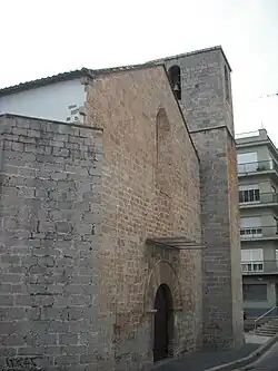 La fachada de la iglesia presenta una portada de arco de medio punto con marcada línea de imposta. En la parte superior se abre un vano ligeramente apuntado.