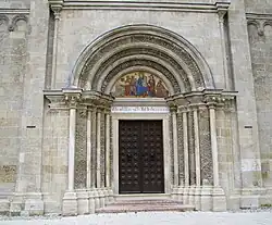 El monumento comenzó a ser construido a finales del siglo XII o a comienzos del siglo XIII, presuntamente cuando Pot, un ispán (gobernador de provincia), descendiente de un caballero llamado Geur (Győr), planificó la estructura y le donó un territorio a los monjes benedictinos. Se tiene registros de esto, ya que la aprobación real de tal donación aparece en un documento de 1208 emitido por el rey Andrés II de Hungría. Probablemente para esa fecha ya se había terminado, puesto que se ha encontrado grabado en un muro externo el año de 1206.