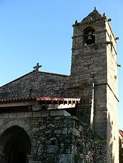 Algunos estudiosos han llegado a afirmar que la iglesia se ubica donde en tiempos prerromanos se alzaba un castro. Esto es habitual en el territorio galaico, donde el afán cristianizador situaba los templos dedicados a cristo sobre las citanias celtas. Algunas leyendas atribuyen su fundación a Doña Urraca. Los testimonios más fiables afirman que la primera etapa de construcción data del siglo XII: la arcada, el muro lateral del antiguo nártex (que aún se conservan) y la nave central. Todos ellos presentan las características típicas del estilo románico. En una segunda etapa, se añadieron elementos góticos: la capilla del Carmen, el altar mayor y el baptisterio, todos con hermosas bóvedas de crucería que delatan el estilo gótico, quizás de los siglos XIV o XV.