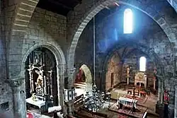 La iglesia se halla decorada en su interior con inscripciones de origen medieval, escudos y varias tumbas que aún no han sido investigadas como se merecen.