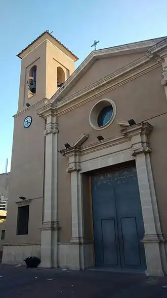 La puerta principal esta enfocada a la avenida principal de Las Torres de Cotillas, cerca de otro monumento representativo como es el ayuntamiento de la localidad.
