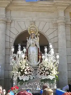 Existía ya una talla de esta advocación mariana en el pueblo en la ermita de San Antón, donada alrededor de 1600 por Antón Fernández-Capel, regidor de la Villa de Cehegín por aquella época. Dicha talla se trasladó a la iglesia con su nombre a finales de 1723 en una procesión junto con el santísimo. En 1795, debido a los perjuicios de mover la talla de la virgen para sacarla del altar mayor para procesiones y a su mal estado se decidió encargar otra talla de la cual sí que se conservan imágenes fotográficas (no como la anterior). Esta está atribuida a Francisco Fernández Caro. En el transcurso de la guerra, ambas tallas de las vírgenes fueron destruidas, conservándose solamente la cabeza del Niño Jesús de la segunda el cual se encuentra en la sacristía de esta parroquia.