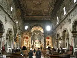 En el interior, la remodelación barroca proporcionó un ábside completamente reedificado con un altar de pietre dure (un tipo de mosaico con piedras, derivado del mosaico bizantino, típico de Florencia)[4] y una perspectiva sotto in su (1770) en el techo abovedado de la nave.