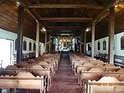 | Nave principal | Tres naves, cubierta con artesonado | |