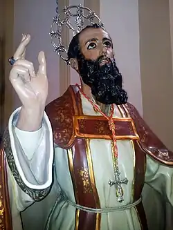 También se encuentran en el altar mayor Santa Mónica (2008) y San Ambrosio de Milán (2008) ambas de Francisco Liza.