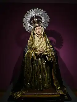 Entre el patrimonio escultórico del templo podemos destacar la imagen de la dolorosa arrodillada, atribuida a Cristóbal Ramos.[1]