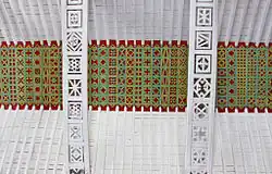 La enjuta del arco triunfal que da acceso al bresbiterio está decorado con arabesco.