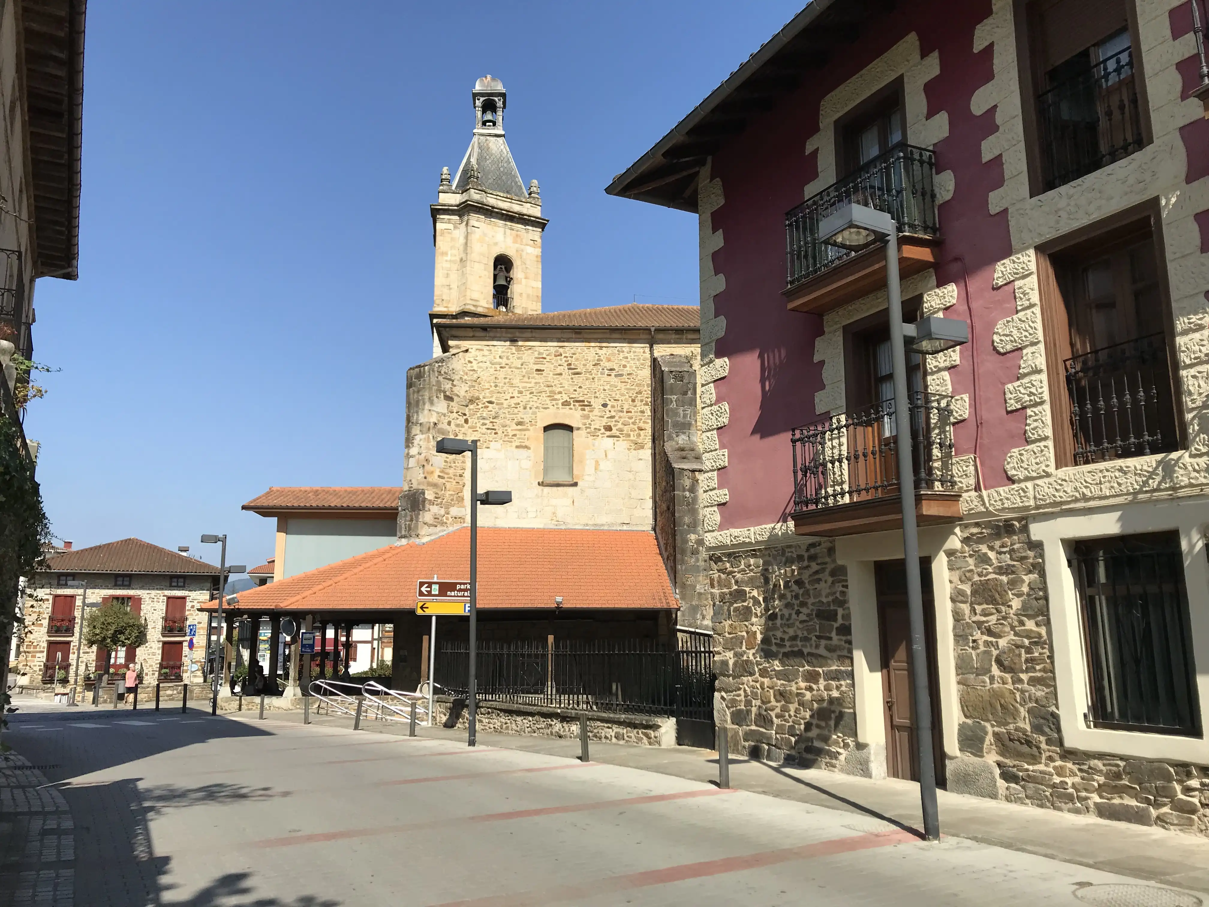 La igl. parr. (San Bartolomé Apóstol) fundada en 1338 y reedificada en 1513; tiene fachada gótica, con 4 columnas de piedra en los intercolumnios y 2 estatuas de San Pedro y San Juan, ademas de las de San Pablo y Ntra. Señora sobre la cornisa: su long. es de 101 pies, y su lat. de 42; hay bóvedas, 5 altares y torre; siendo notable un arco para sostener el coro, de mucho mérito, segun los inteligentes, pues presenta 40 pies de ancho, y desde el arranque á la clave solamente 8: hay 2 cuadros bastante buenos, uno de la escuela italiana, que representa al Crucificado, y el otro á Sta. Terresa de Jesus; la parr. está servida por 3 beneficiados de presentacion del ayunt., decano del cabildo y dueño de la casa de Urquizu en Yurre.(Madoz, 1850, p. 272)