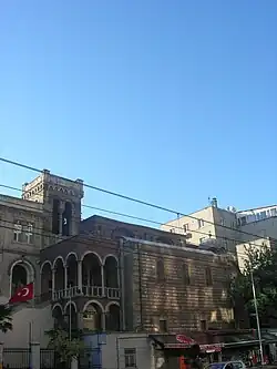 El edificio se encuentra en Estambul, en el distrito de Beyoglu, en el barrio de Karaköy (antigua Galata), en una terraza en la parte superior de una escalera.