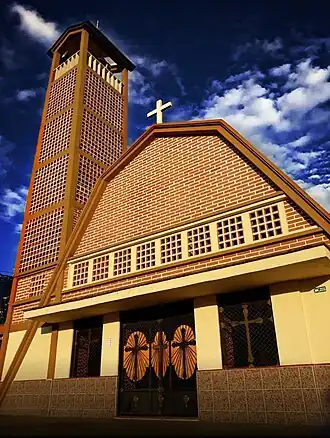 Fue construida en 1960 con un estilo moderno y llamativo que tiene 3 naves 1 central y 2 laterales, con sus 14 Vitrales grandes y triangulares que hacen con su forma honor a la Santísima trinidad. Estas tienen escenas de la vida de Jesucristo y algunos Santos de la Iglesia.